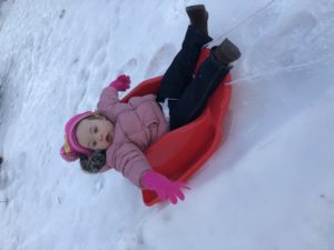 Another one of Alexa’s favorite outside activities is sledding!