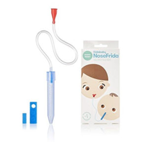 Way more effective than the bulb syringe, the NoseFrida uses your suction to remove snot from your poor babies stuffy nose.