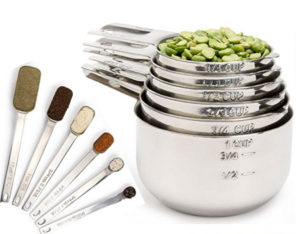 The first set of measuring cups and spoons I bought were plastic and after a few months of use the writing on them wore off. I recommend going with some good quality meltal ones so that this doesn’t happen to you.