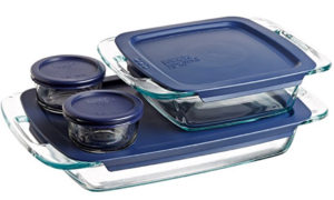 Baking dishes with lids are great so you don’t have to dirty more dishes to store the food in. Just pop the lid on when you are done and stick it in the fridge for later.