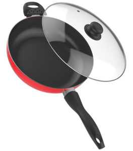 You will need a few frying pans in varying sizes. Three Pans, 11 in, 9.5 in, and 8 in is a good place to start. Even better if they come with lids because a lot of recipes call for covering the dish while cooking.