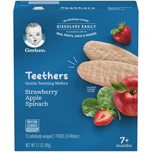 To soothe baby’s teething pain try giving them an easily dissolvable teething wafer.